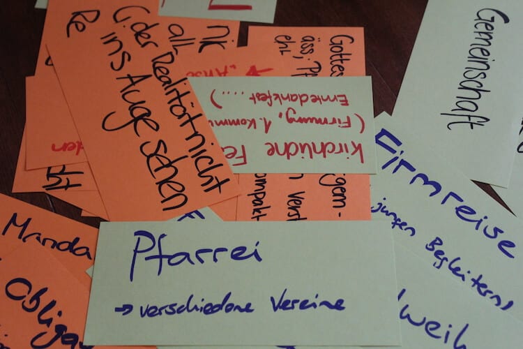 Die Erarbeitung der konkreten Anliegen, Vorschläge und Erwartungen erfolgte am Vormittag in einer «Zukunftswerkstatt». Dabei haben die jungen Menschen mutig, offen und ehrlich verschiedene Themen angesprochen. Ausgangspunkt waren oft persönliche Erfahrungen und Erlebnisse in und mit der katholischen Kirche.
