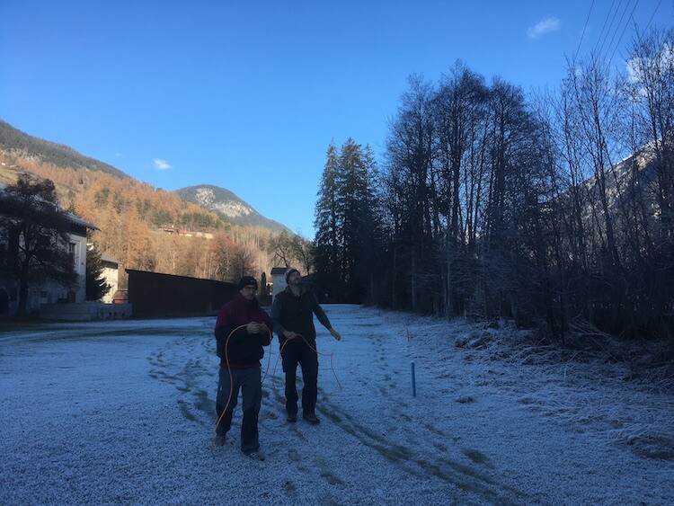 WASSERLICHT verlangt dem Verein viel Manpower ab. So verlegten die Vorstandsmitglieder am vergangenen Samstag bei Temperaturen unter dem Gefrierpunkt und mit klammen Fingern Kabel, zogen kleinere Gräben in den gefrorenen Boden und bereiteten die Installationen vor. Neben der Unterstützung durch weitere gute Geister, Vereinsmitglieder, Landeigentümer und der Gemeinde ist aber vor allem eines wichtig: Sponsoren. Um den Fehlbetrag für die einzigartige Lichtinstallation einzuspielen, hat der Verein Wasserweg ansaina nun eine Crowdfunding Aktion lanciert.