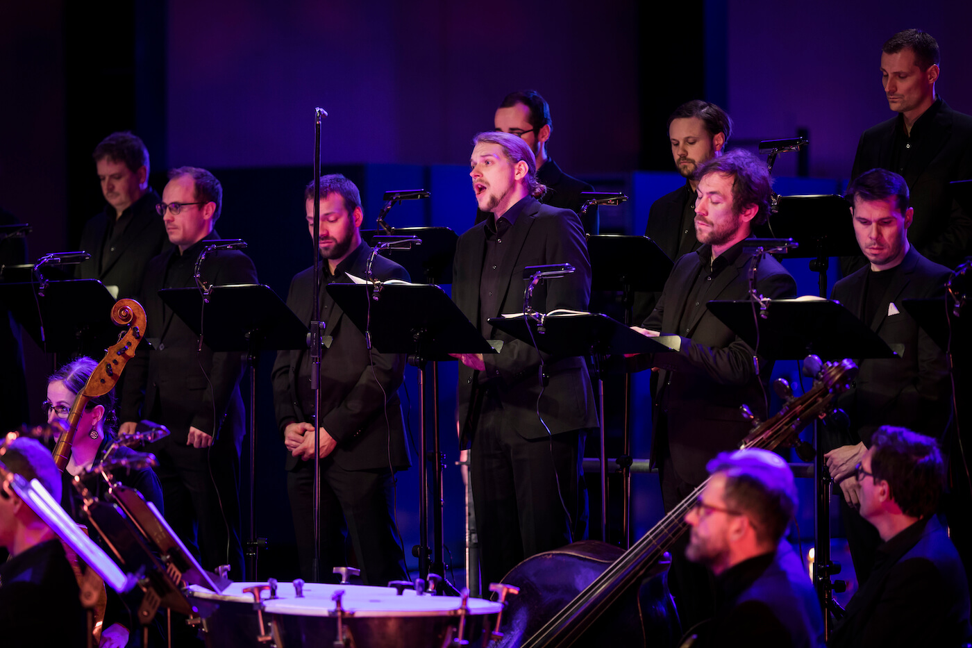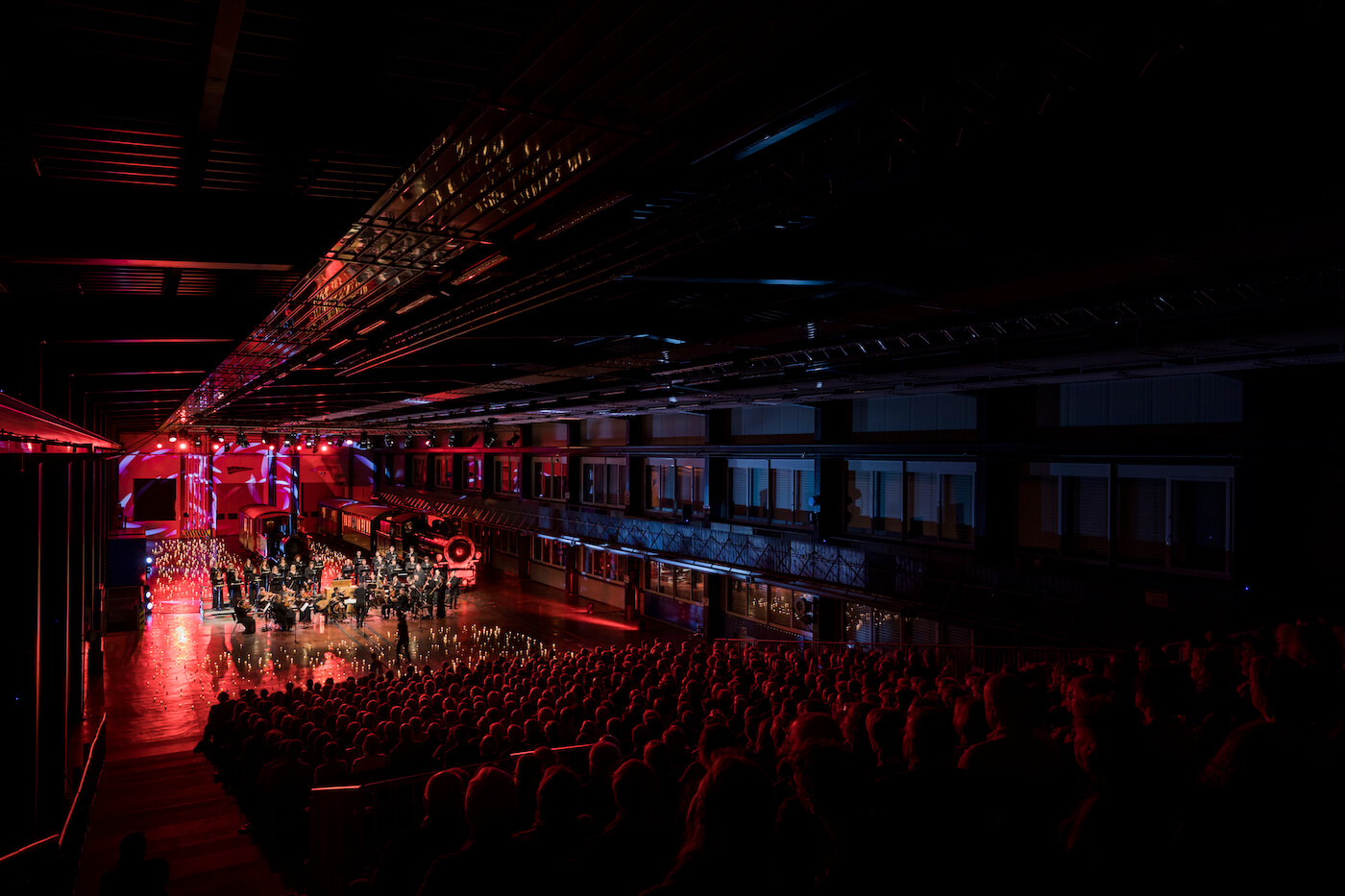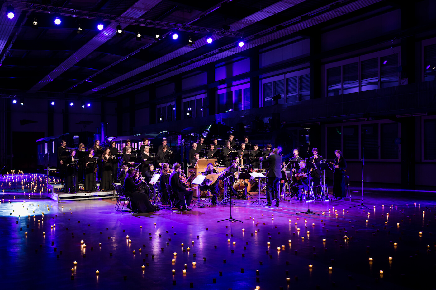 In seiner «Messe de Minuit» verarbeitet Charpentier Themen und Motive aus französischen Weihnachtsliedern. Das «Te Deum» wurde zu Charpentiers Zeit häufig als festliches Loblied bei Krönungszeremonien verwendet. Heute kennen wir das einleitende Präludium vor allem als Eurovisionsmelodie. Clau Scherrer dirigiert Origens Vokalensemble und das Barockorchester «Concerto Stella Matutina». Serge Schmuki setzte den temporären Konzertsaal in mystisches Licht.