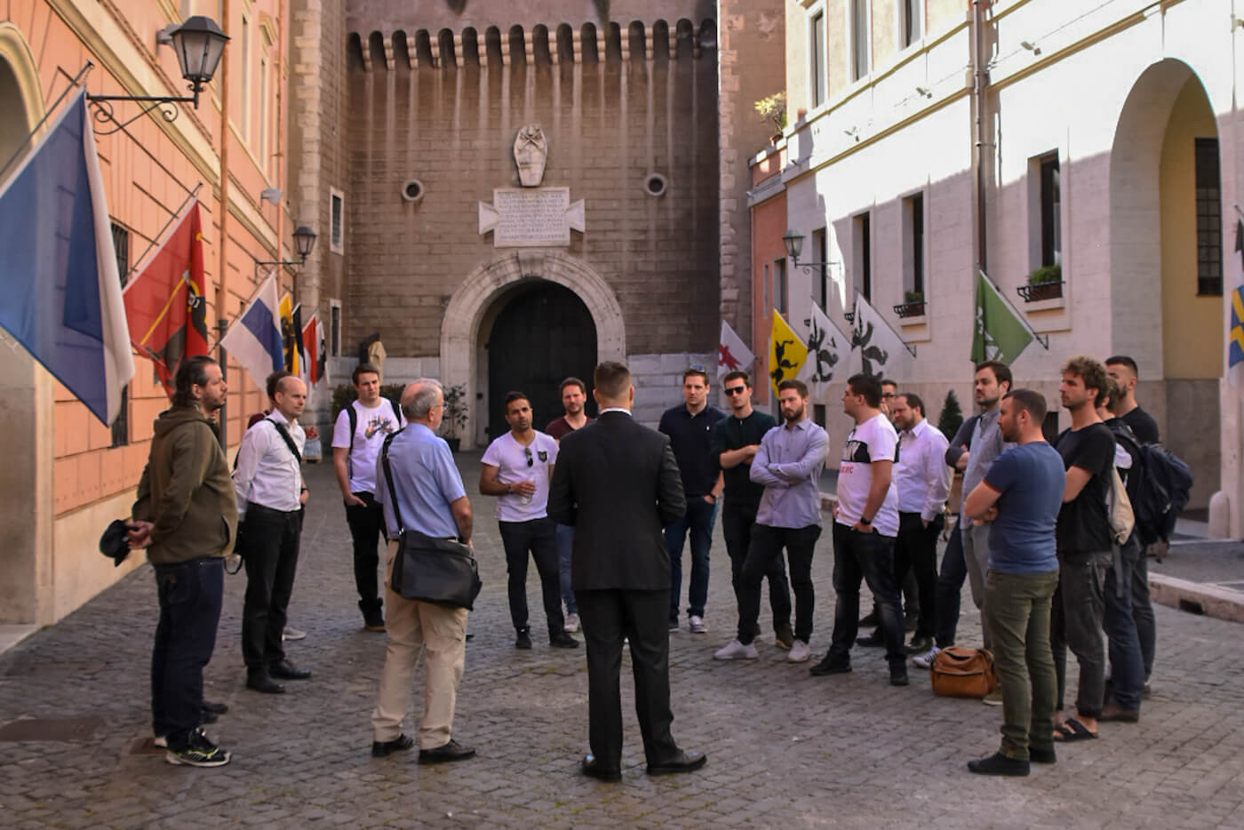 Bevor in Rom die Fussballschuhe angezogen wurden, ging es erstmal auf Visite zur Schweizer Garde. Dank guten Freundschaften zum vatikanischen Fussball-Verband und zur Schweizer Garde von Aurelio Balbis, der guten Seele der FA Raetia, durfte die Fussball-Auswahl fernab der Massentourismus-Ströme den Vatikan besichtigen. Ein einmaliges Erlebnis für Spieler und Funktionäre.