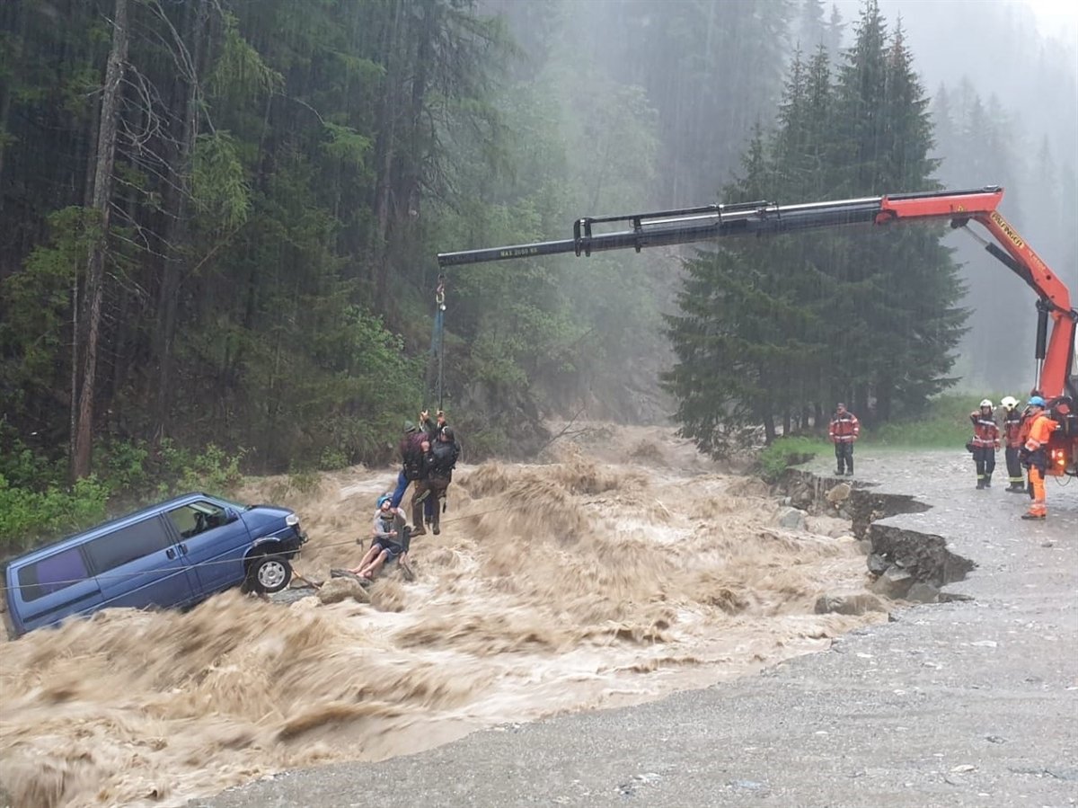 Von Dienstag auf Mittwoch haben Starkniederschläge im Kanton Graubünden zu diversen Strassensperrungen und Einsätzen der Blaulichtorganisationen geführt. In Splügen mussten Personen aus einem in einen Bach geratenen Auto evakuiert werden.