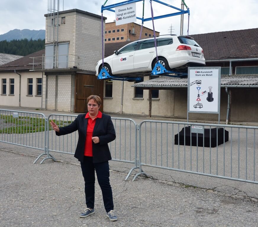14’000 Bündnerinnen und Bündner besuchten am Samstag die Ems-Chemie und bestaunten die Technologien und Angebote des grössten privaten Bündner Arbeitgebers. GRHeute-Fotograf Charly Bosshard war am Medien-Rundgang mit Ems-Chefin Magdalena Martullo-Blocher dabei.