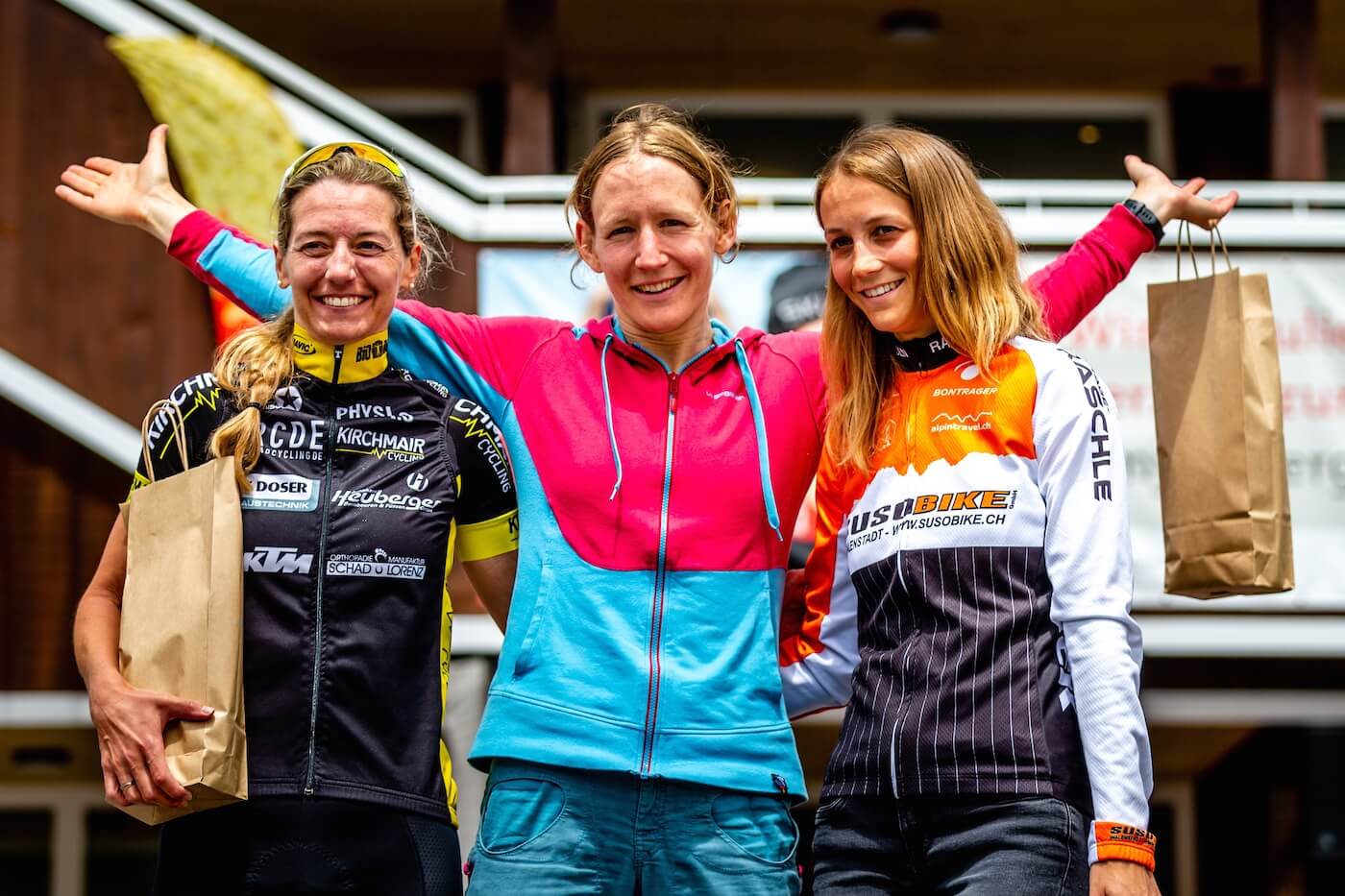 Bei den Frauen dominierte Nina Zoller aus Chur zweier Schreckmomente zum Trotz das Rennen von Anfang an und hatte nach 4:03:32 Stunden satte 24:14 Minuten Vorsprung vor Monika Dietl aus Freising in Deutschland sowie Joy Welti aus Walenstadt. Den ersten Adrenalinschub hatte Zoller dabei schon vor dem Start, als sich die elektronische Schaltung als nicht einsatzfähig herausstellte. Erst in letzter Sekunde konnte sie an die Startlinie rollen – noch ohne zu wissen, ob die Schaltung für die kommenden Stunden funktionieren würde. Von 7:48 Minuten auf dem Albula über 10:41 Minuten an der Zwischenzeit in Silvaplana und 15:19 Minuten auf dem Julierpass baute sie ihren Vorsprung jedoch schnell aus und war auch nicht mehr zu gefährden, als sie die Kette verlor und kurzzeitig vom Rad musste. «Da war dann leider die Gruppe weg, das war sicher nicht optimal in der langen Abwand und bei Gegenwind. Den Rest bin ich dann komplett allein gefahren», so die Wahl-Bündnerin und Vorjahres-Zweite der Alpen Challenge.