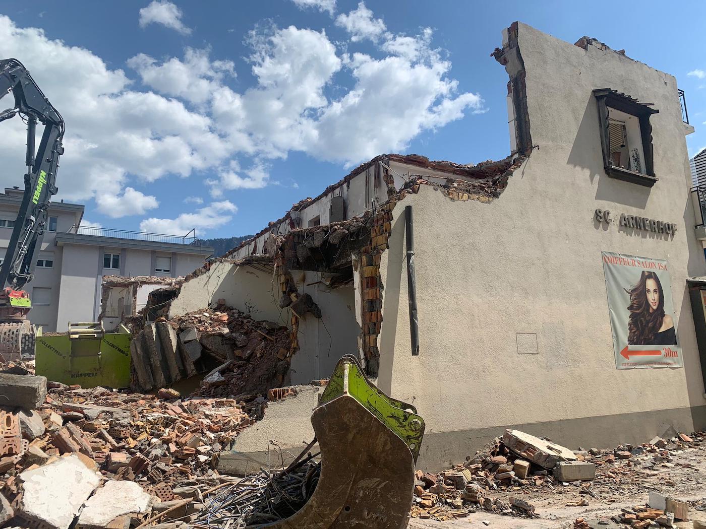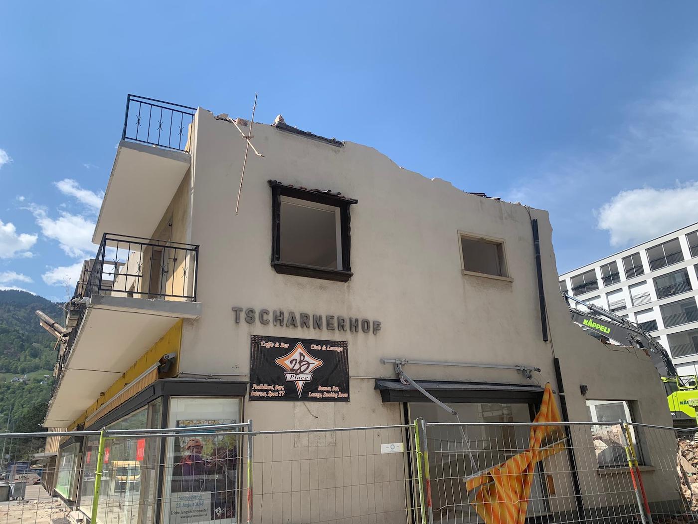 Der Tscharnerhof an der Bahnhofstrasse in Landquart muss weichen. Das Gebäude, das das Landquarter Dorfbild viele Jahre prägte und bis vor zehn Jahren auch das Kino Landquart beherbergte, wird dieser Tage abgerissen. Gemäss dem Prättigauer & Herrschäftler soll das alternde Wohn- und Geschäftshaus einem Bau für alters- und handycaptaugliche Wohnungen weichen. Im Erdgeschoss gibt es laut Bauherr Samuel Landolt mehrere Gewerberäume, darüber 25 Wohnungen zwischen 1,5 und 4,5 Zimmern. Bilder vom Abbruch.