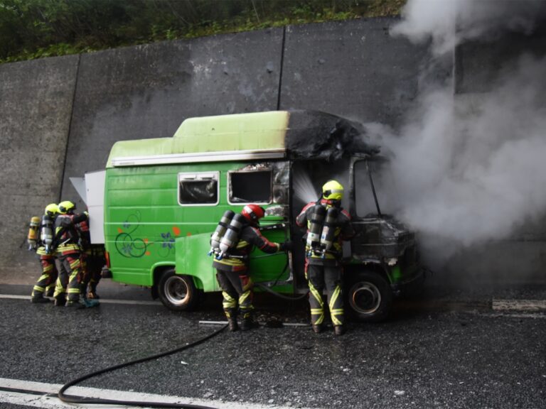 Bei der Einfahrt in die Rofla Galerie bemerkte der Mann Rauch aus dem Motorraum. Aus diesem Grund hielt der Mann sein Gefährt an, liess dieses an den Galerieausgang zurückrollen und verliess es zusammen mit seinem Hund. Kurz darauf stand das Wohnmobil in Vollbrand.