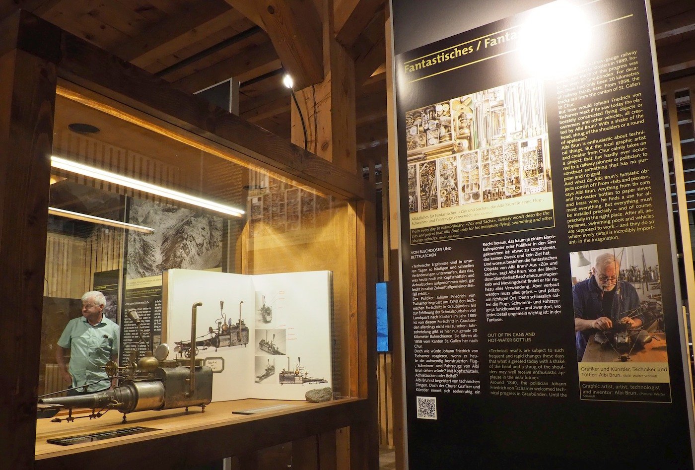 Tönt skurril? Der Maloja-Inn-Kanal und der Schifffahrtsweg über den Splügenpass sind nur zwei von vielen visionären Projekten, die ab Sommer 2020 in einer Sonderausstellung des Bahnmuseums Albula vorgestellt werden. Anhand von originalen Plänen werden auch die Greinabahn, die Tödibahn, die Scalettabahn oder die Engadin-Orient-Bahn erläutert. Manche dieser historischen Projekte erscheinen aus heutiger Sicht finanziell oder technisch kaum realisierbar. Genau darum bilden sie den passenden Auftakt zur Sonderausstellung mit dem Titel «Neben der Spur – von skurrilen Bahngeschichten».