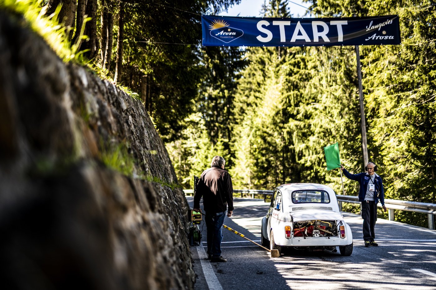 Bereits am frühen Morgen waren laute Motorgeräusche zu hören, während die Fahrzeuge von Arosa nach Langwies überführt wurden. Die Rennläufe verliefen alle ohne grössere Zwischenfälle. Kurz vor dem Mittag gab es einen Unfall, welcher glücklicherweise nur mit einem Blechschaden endete. Das Rennen wurde wegen der Beseitigung von Ölflecken kurz unterbrochen. Anschliessend konnten die Wertungsläufe weitergeführt werden. Am Streckenrand zwischen Langwies und Arosa hatte es gegenüber den Vorjahren deutlich mehr Schaulustige, welche das ganze Spektakel in ihren Campingstühlen oder wandernd beobachteten und die einzigartigen Fahrzeuge bestaunten. Der Aufruf, den Anlass entlang der Strecke und nicht im Pulk im Dorf Arosa zu besuchen, fruchtete. Das Corona-Schutzkonzept konnte ohne Zwischenfälle umgesetzt und eingehalten werden. Endlich hat wieder einmal ein Event stattgefunden – dies hat allen Zuschauern sehr gefallen. Abgerundet wurde der erste Renntag mit dem Race Dinner in der Eventhalle.