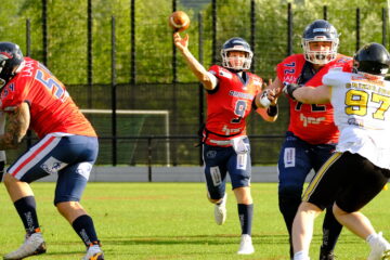 Bis zur Pause hatten die Broncos die ungestümen Gäste dann aber erstmal in die Schranken verwiesen: 35:0 lautete bis zur Halbzeit das Skore, der neue Broncos-Quarterback Chase Andries hatte dabei mit vier Touchdowns eine deutliche Duftmarke gesetzt. Im ersten Spielviertel eröffnete Passfänger Adrian Sünderhauf das Skore nach einem Pass von Andries über 28 Yards, wenige Minuten später skorte der Amerikaner aus 21 Yards mit seinen schnellen Beinen gleich selbst zum 14:0.