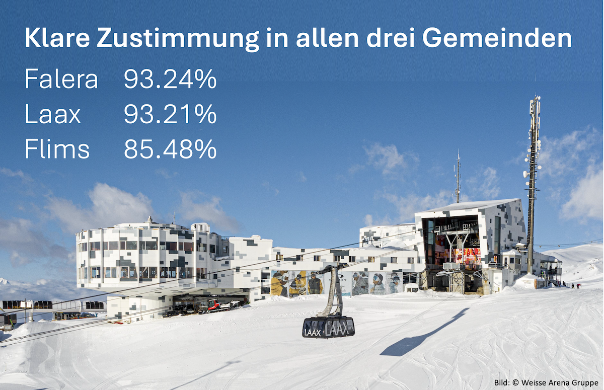 Mehr als zwei Drittel aller Stimmberechtigten gingen in Flims an die Urnen und sagten mit mehr als 85 Prozent JA zum einem Kredit über zwei Millionen Franken. An den Gemeindeversammlungen von Falera und Laax waren die Zustimmungen mit über 93 Prozent sogar noch höher gewesen. Die Weisse Arena Bergbahnen AG wird ihre Infrastrukturen am Berg nun an die Finanz Infra AG verkaufen, sie als «Sale and Leaseback» zurückpachten und mindestens für 30 Jahre weiterbetreiben. Die Finanz Infra AG gehört heute zu zwei Dritteln den drei Gemeinden, wird von diesen nun aber vollständig übernommen, wie die drei Gemeinden in einer gemeinsamen Medienmitteilung mit der Weissen Arena Gruppe am Sonntag schrieben.