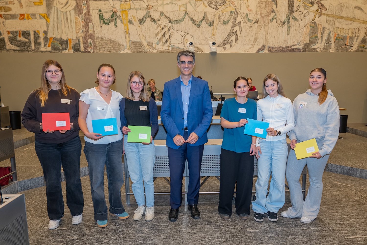 Insgesamt verabschiedeten die Teilnehmerinnen 5 Petitionen, die am Ende des Nachmittags Regierungspräsident Marcus Caduff zu Händen des Grossen Rates überreicht wurden. Auch der Regierungspräsident zeigte sich beeindruckt vom Engagement der jungen Frauen: «Es braucht Mut, sich in eine Debatte einzubringen – und genau diesen Mut haben die Teilnehmerinnen des Mädchenparlaments gezeigt. Ihr Engagement, ihre Diskussionsfreude und ihr demokratisches Verständnis haben mich beeindruckt.»